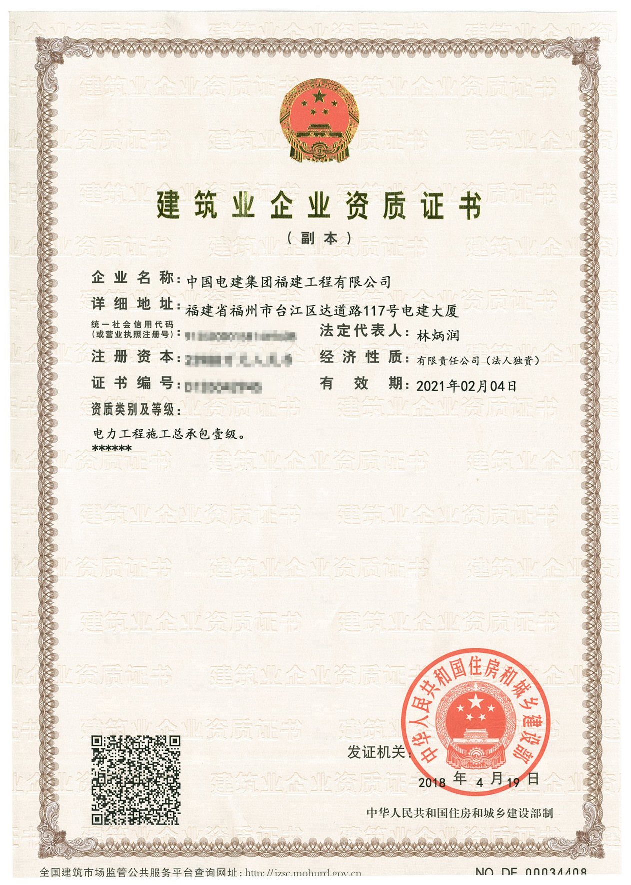 电力工程施工总承包壹级