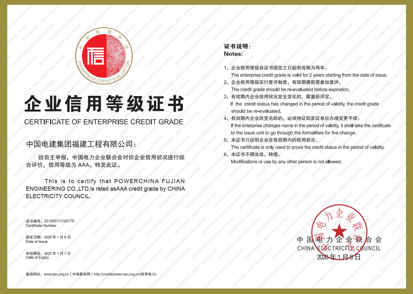 企业信用评价AAA级