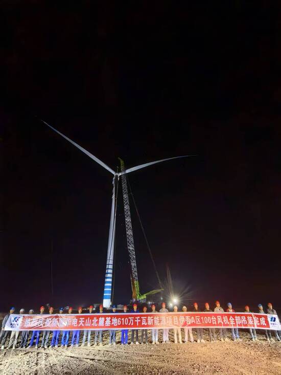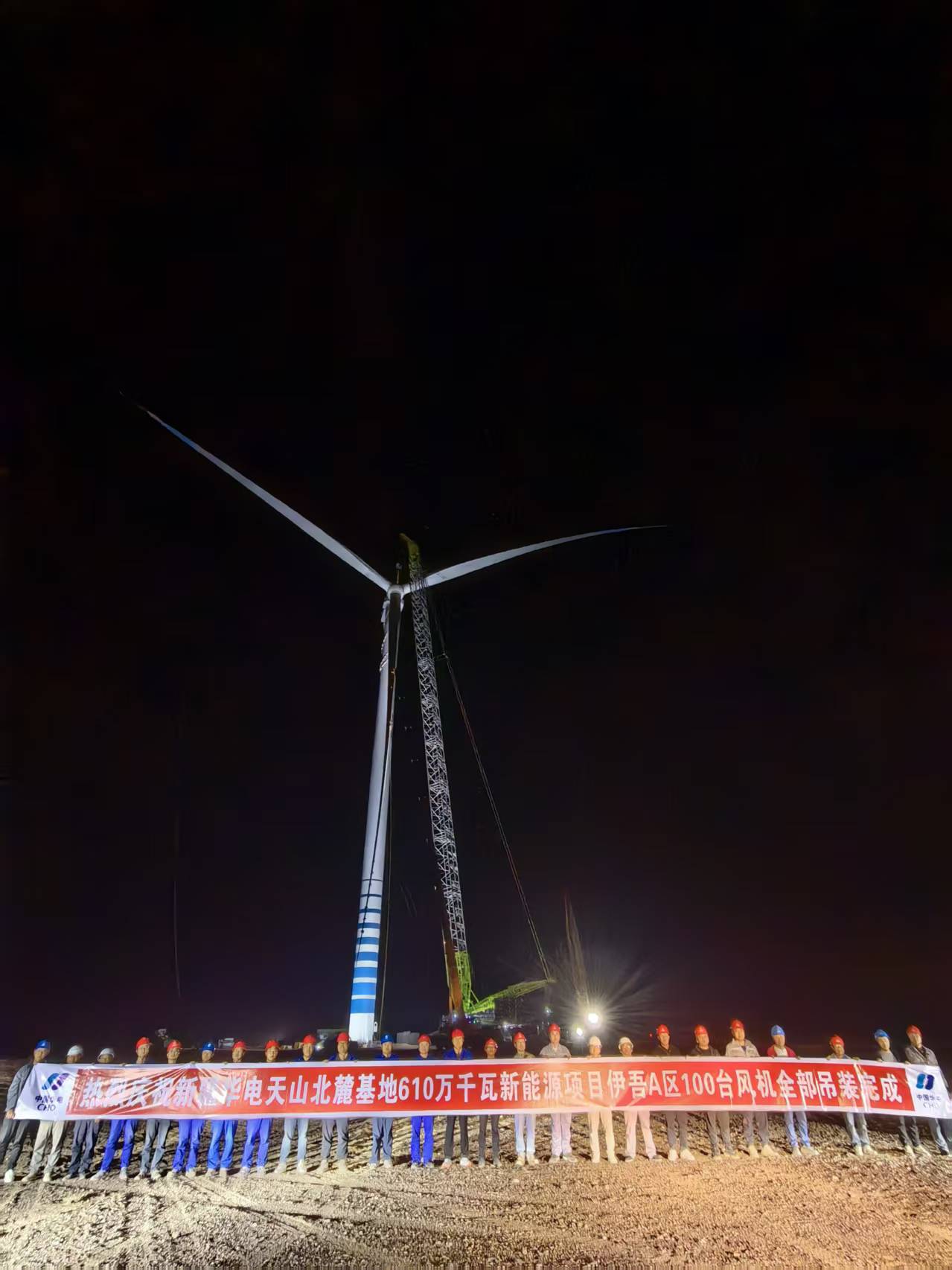 天山北麓基地610万千瓦新能源项目标段六风电机组全部吊装完成 |
